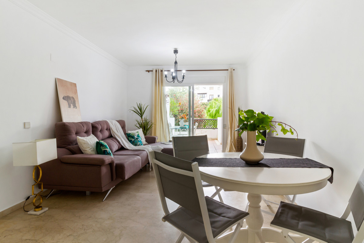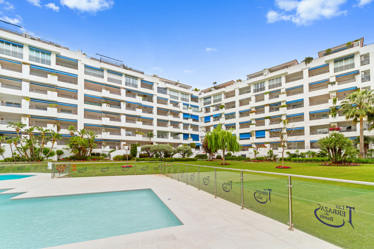 Priced at €525000 : Nestled within a prestigious community, this luxurious 2 bedroom, 2 bathroom apartment is coastal living at its finest. Boasting a prime location in the heart of Puerto Banus, residents enjoy unparalleled convenience with the beach and all essential amenities just a leisurely stroll away. Step into a haven of modern comfort and style. The apartment features a charming covered terrace, providing the perfect spot to unwind and soak up the Mediterranean sun while relishing in the tranquility of the surroundings. Residents of this development have exclusive access to the community's lush green gardens and inviting communal pool, offering an oasis of relaxation and recreation amidst the vibrant coastal landscape. Inside, the apartment's stylish interiors showcase contemporary finishes, seamlessly blending sophistication with functionality. The well-designed layout encompasses 2 spacious bedrooms and 2 modern bathrooms, providing ample space for both relaxation and entertaining. Conveniently located just a 2-minute walk from the lively harbor of Puerto Banus, residents can immerse themselves in the vibrant energy of this bustling destination, filled with upscale boutiques, chic cafes, and vibrant nightlife. Don't miss the opportunity to experience the ultimate in Mediterranean lifestyle. Schedule your viewing today and make this exquisite apartment your own.